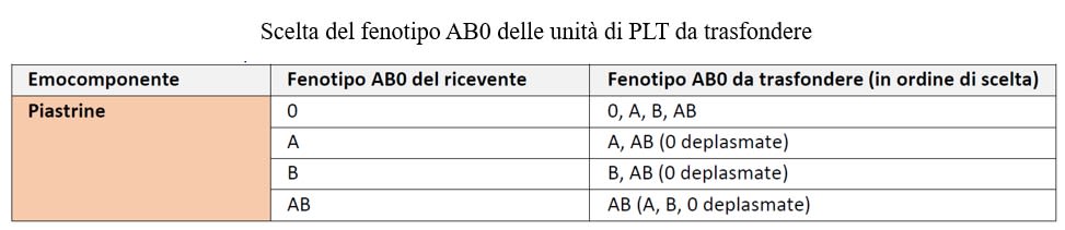 La conta piastrinica riportata è quella raccomandata, pertanto si consiglia la trasfusione per valori inferiori a quelli riportati